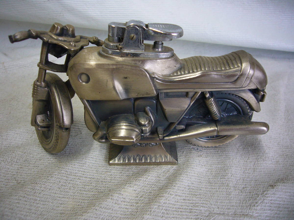 【商品の説明】 ライターは、点火つまみを押しても火花は出ません。バイクの前輪は左右に動かすことができます。 全体に経年の汚れがあります。その他は画像で判断いただけます方の入札をお待ちしております。 注意事項:当方は、金曜日午後から日曜日、及び祭日もお休みいたします。 質問等は、平日月曜日から金曜日午前中にお願いします。