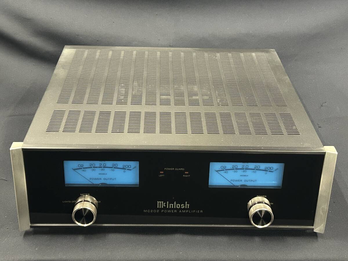 美品 Mcintosh ステレオパワーアンプ MC202 エレクトリ正規品 マッキントッシュ 通電OK メーカー:McIntosh 型番:MC202 外形寸法:幅約445mm×高さ約151mm奥行約480mm 重量:約29.5kg エレクトリ正規品 音出し・照明・レベルメーター動作確認済み 良好です。 メーターランプ新品10個交換済み 付属品 電源ケーブル、取説あり 他。(画像6,7参照) 写真が全てです。 現状品 ノ―クレーム、ノーリターンでお願い致します。
