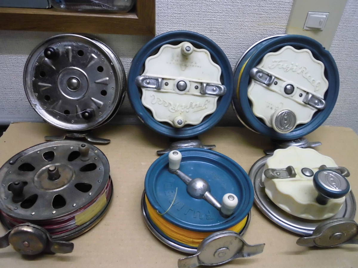 FUJIREEL45×2台。 内1台切り替えレバー欠けあり FujiReel40 FujiReel40スプールなし、小ヒビ有 MATUREEL 使用感あり オリンピック120HOKKAI 回転ストッパー確認済、使用感部品の有無は写真で判断してください中古品につきNCNRでお願いします。 一部さび止め塗装部品交換してます。中古品のため神経質な方は入札をご遠慮ください。ついているラインはオマケ程度の物です。 配送はヤマト便 複数落札の場合、同日分に限り、希望があれば同梱させていただきます。 落札より48時間経過し連絡がない場合、キャンセル扱いになりますので連絡は早めにお願い致します。 この送品に限り送料無料とさせていただきます。同梱は不可です。