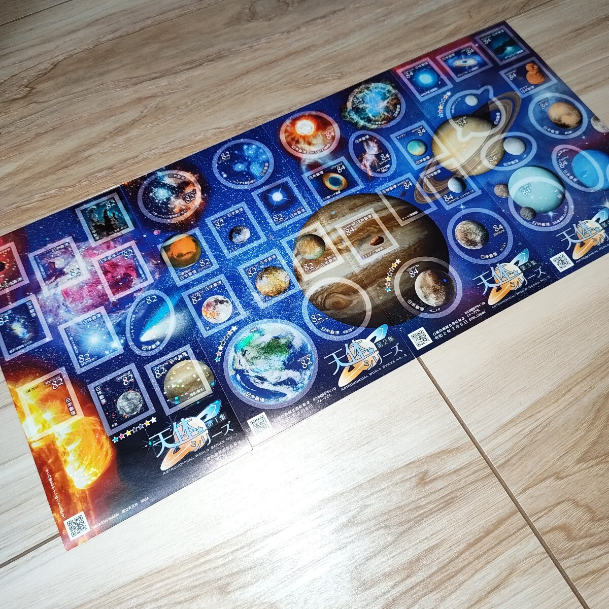 平成30年2月7日に発行された、天体シリーズの切手シートです。 太陽、月、惑星、彗星、星雲、星団など、様々な天体が描かれています。 未使用品ですが、自宅保管のため、神経質な方はご遠慮ください。 【テーマ】天体 【発行日】平成30年2月7日 【状態】未使用 よろしくお願いいたします。 天体シリーズ1~4集 82円×10枚 84円×10枚 |
