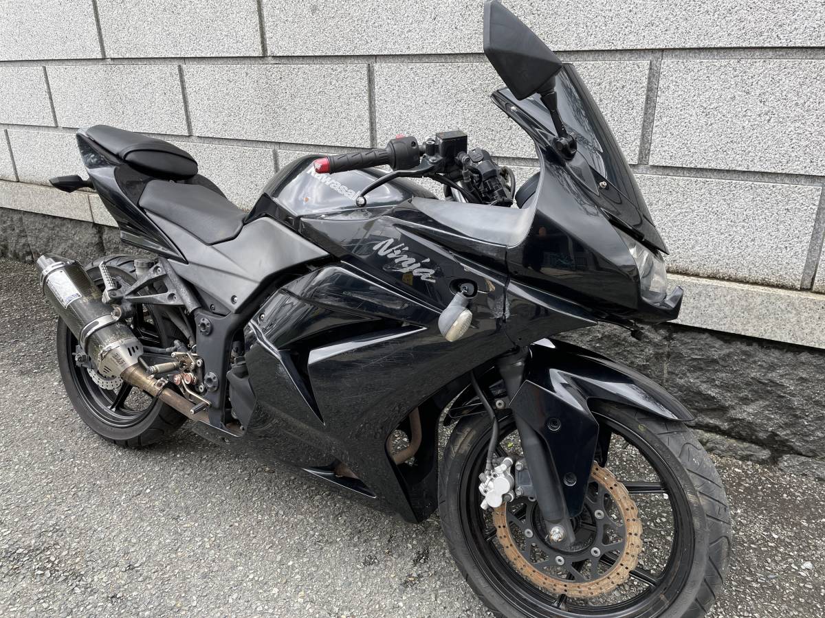 カワサキ ニンジャ250 EX250K 書類、鍵付き レストアベース車 最後までお読み頂き、ご入札をお考えください。 走行距離33309キロ(メーター不動)、電装OK(テールウインカー不点灯)、タイヤ前1分後交換時期。 セルでEG始動をしました。EG気になる異音ありませんでした。フケ不良です。 OIL交換、エアーチェック等、各箇所点検整備してください。 中古車ですので傷、カケ、ワレ、錆、汚れ、Rブレーキ×、その他、見落とし等あります。 キャンセル、クレーム、リターンは受付できませんので間違いの無い様にご入札お願いします。 気になる方は、現車確認、質問をしていただき、ご納得をして頂き!ご入札をお願いします。 すべての車両は、ご使用、ご利用前に各種点検整備、レストアをしてください。 レストアできない方は、お近くのバイクショップで購入して下さい。 自己紹介欄を御覧ください。 ※ 画像現状未整備車両です。 ※ 上記、下記共の内容をご理解、ご了承の上、ご入札をしてください。 ※保管中にバッテリー上がっています。 リアブレーキペダルからキャリパーのパーツが出てきましたのでよろしければ差し上げます。 交換すればリアブレーキ効くようになると思います。
